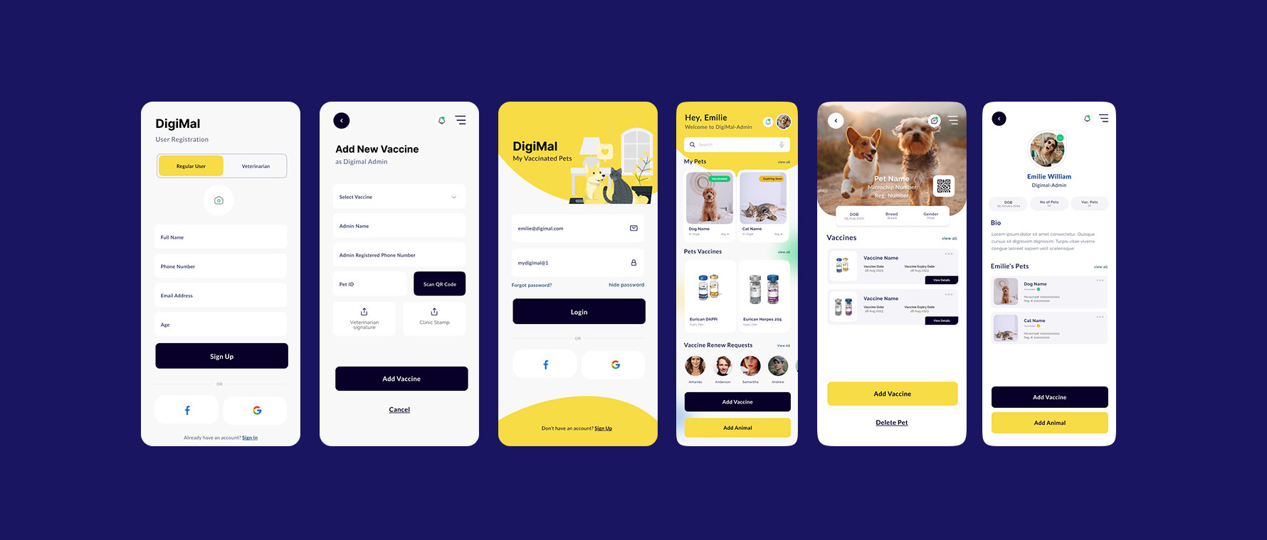 The final design made the app feel light, modern, and genuinely useful. Users could easily understand how to manage their pets’ vaccination timelines and reminders without any confusion. The cohesive design system helped the brand look credible and ready for market.